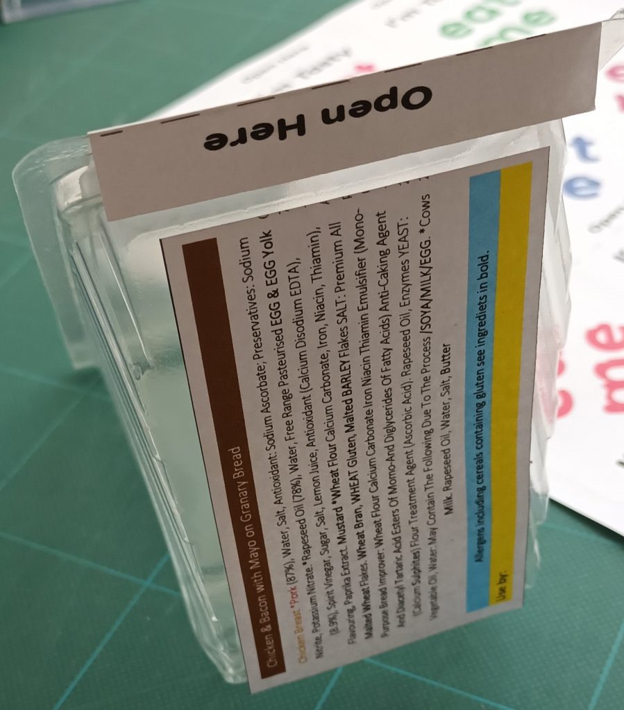 this label helps to seal and keep the lid shut, also display an “Eat by” date.
